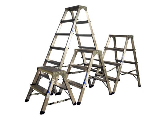 Сходи-драбини в розкладеному стані є стійкий трикутник або трапецієподібну конструкцію. Для різних областей застосування виробники пропонують такі конструктивні варіанти:
